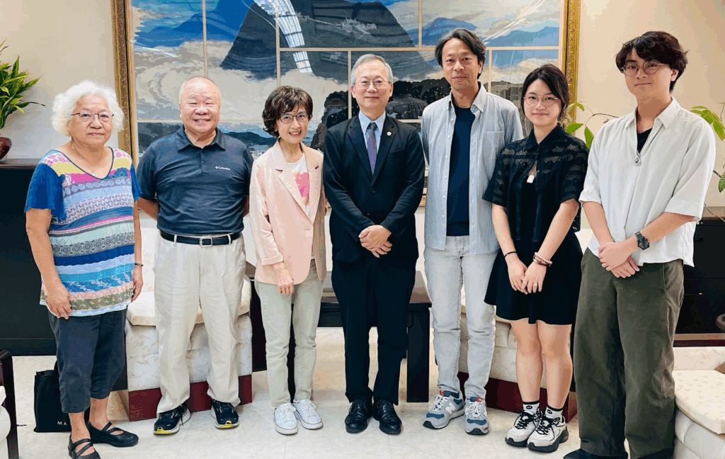 政大北加校友會合唱團總監暨指揮姜靜芬學姊(左三)拜會政大李蔡彥校長(中)、振聲合唱團和政大校友經典團兩團負責人及指導老師