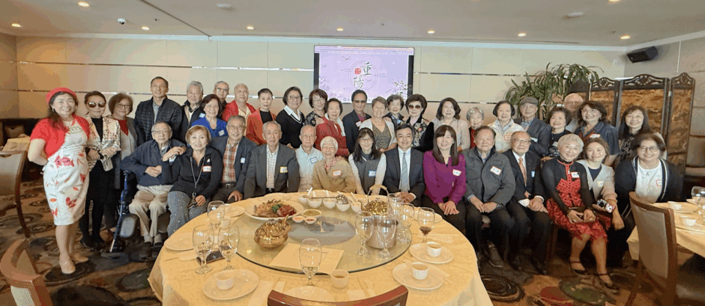 10月25日的重陽敬老餐會場面溫馨歡樂,圓滿結束。有感謝懷念,也有歡樂憶往。感謝40多位的校友及其家人參加,其中包括新上任也是政大校友的經文處伍志翔處長,還有僑教中心莊雅淑主任和多位前校友會會長。餐會由甜美的前會長現任副會長的鄭名雯擔任主持,揭開序幕。